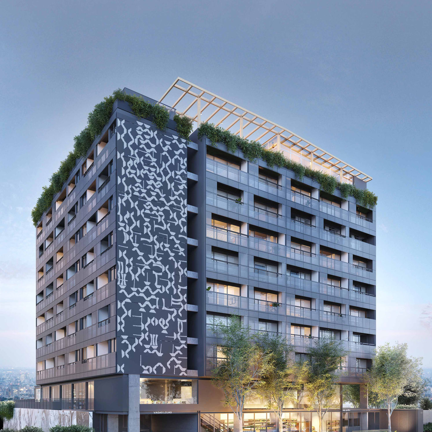 Grandes janelas e terraços individuais que favorecem iluminação e ventilação natural
